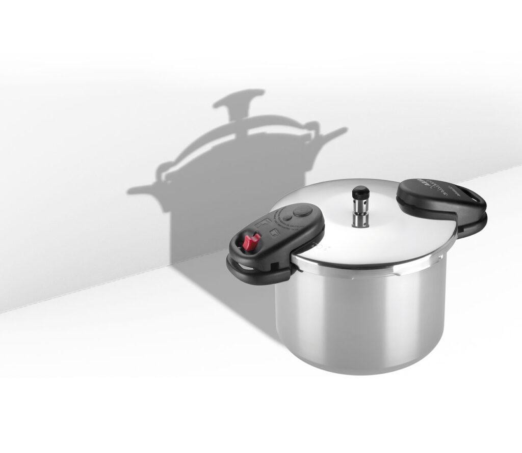 2014 – Diseñamos una nueva olla a presión tradicional, la olla alzatradición, que carece del clásico cierre-puente, y le añadimos elementos de seguridad habituales en las ollas a presión súper-rápidas, por lo que marcamos un importante salto cualitativo en este tipo de ollas, haciéndolas más seguras y más manejables.