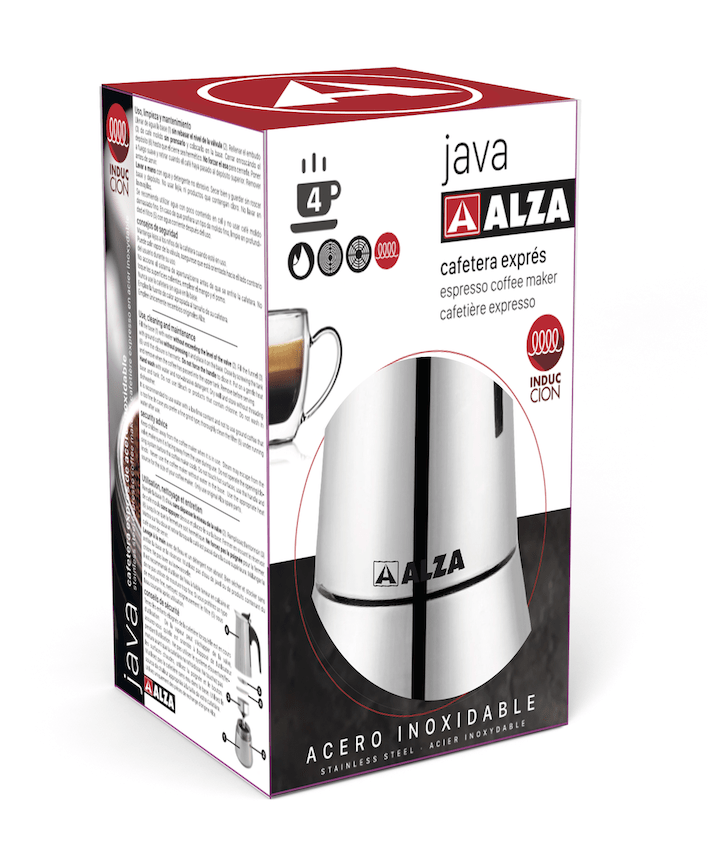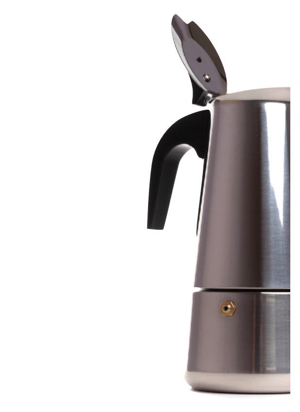 Cafetera moka, fabricada en Acero Inoxidable, con base de Acero Ferrítico especialmente indicado para su uso en cocinas de Inducción.