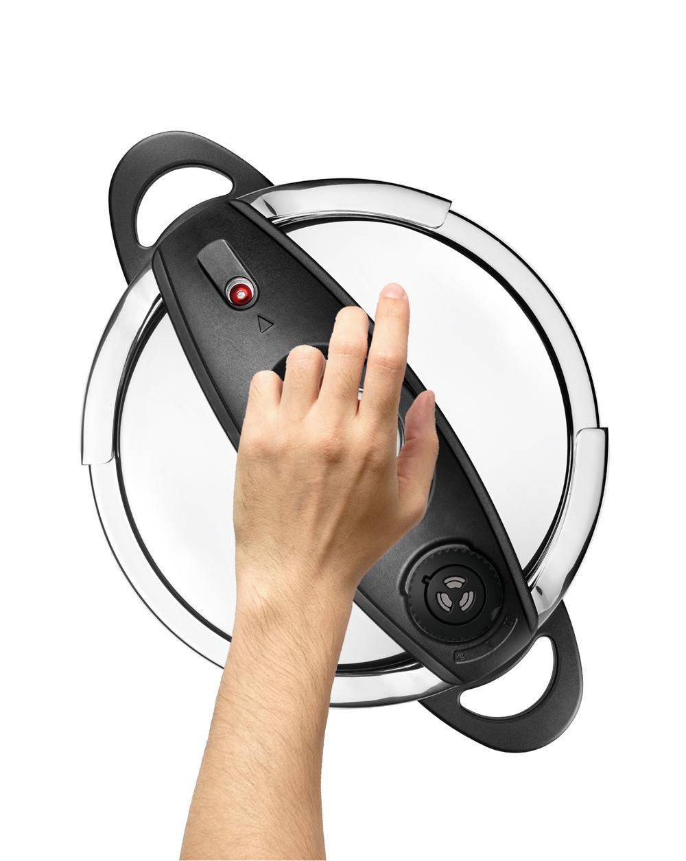 Fantástico sistema de apertura de mínimo esfuerzo, diseñado para abrir y cerrar su olla con solo medio giro y una sola mano.