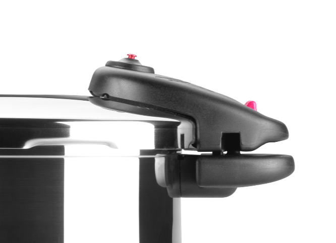 válvula principal de aluminio anodizado, válvula de seguridad de acero inoxidable, y junta de cierre de silicona de primera calidad + ventana lateral, elemento definitivo de seguridad.