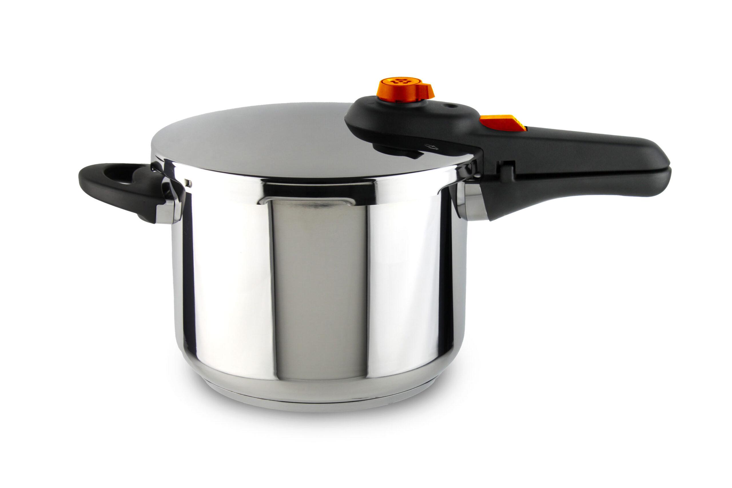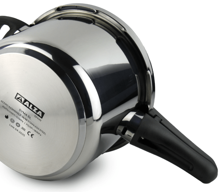 Olla a presión fabricada íntegramente en Acero Inoxidable 18/10 de alta calidad.