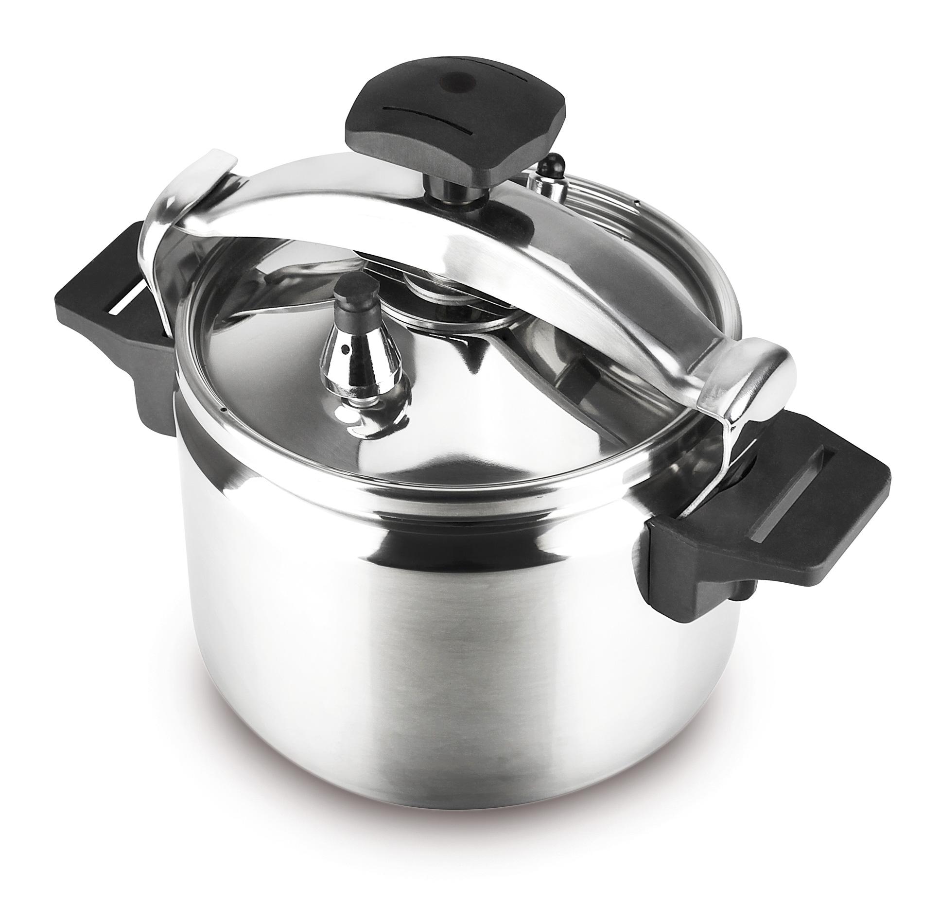 Modelo clásico de olla a presión tradicional. Aura es una olla a presión rápida fabricada en Acero Inoxidable 18/10 de alta calidad.