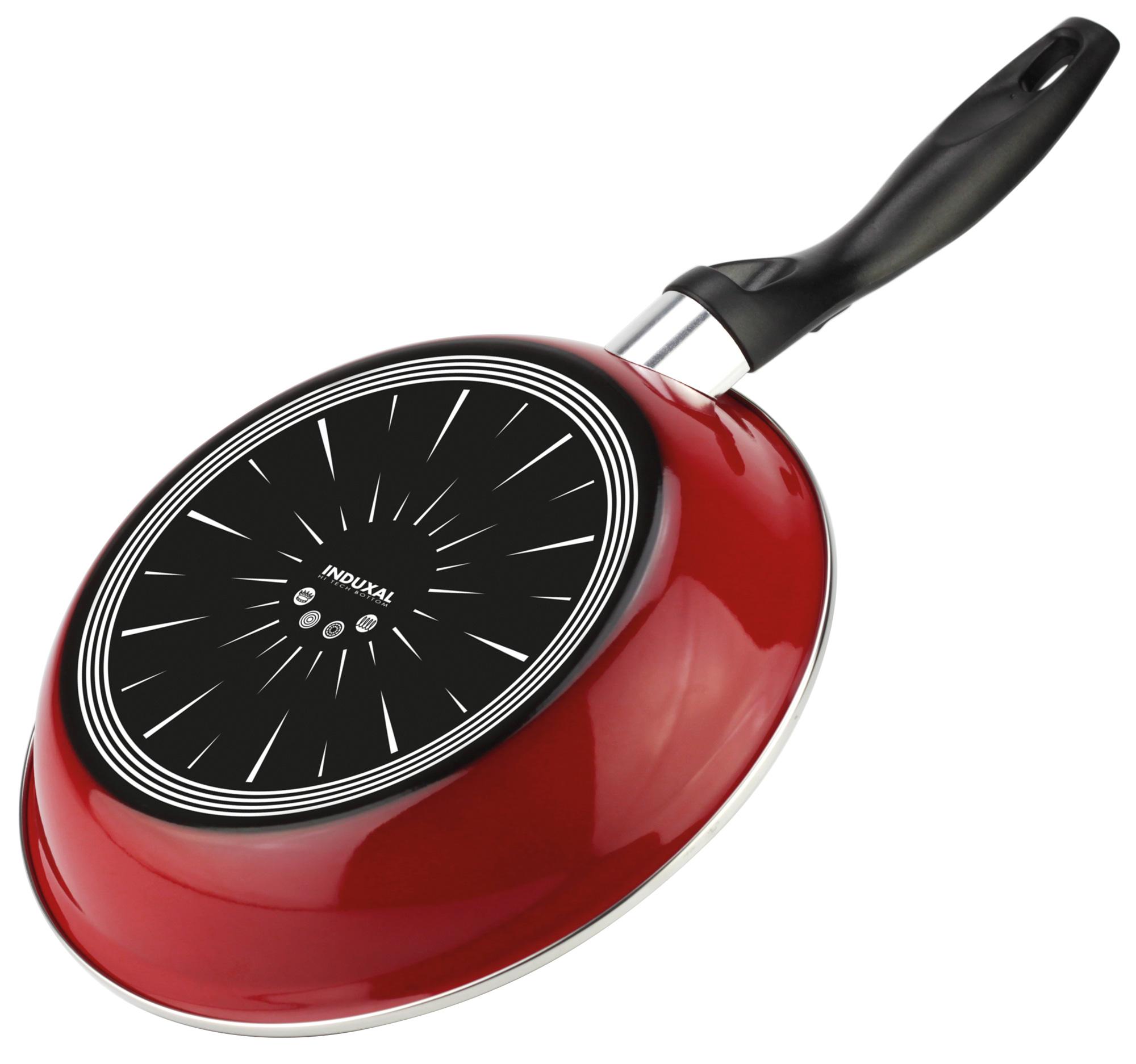 Sartén antiadherente de Acero Vitrificado, con doble capa de esmalte exterior, en vivo color rojo.