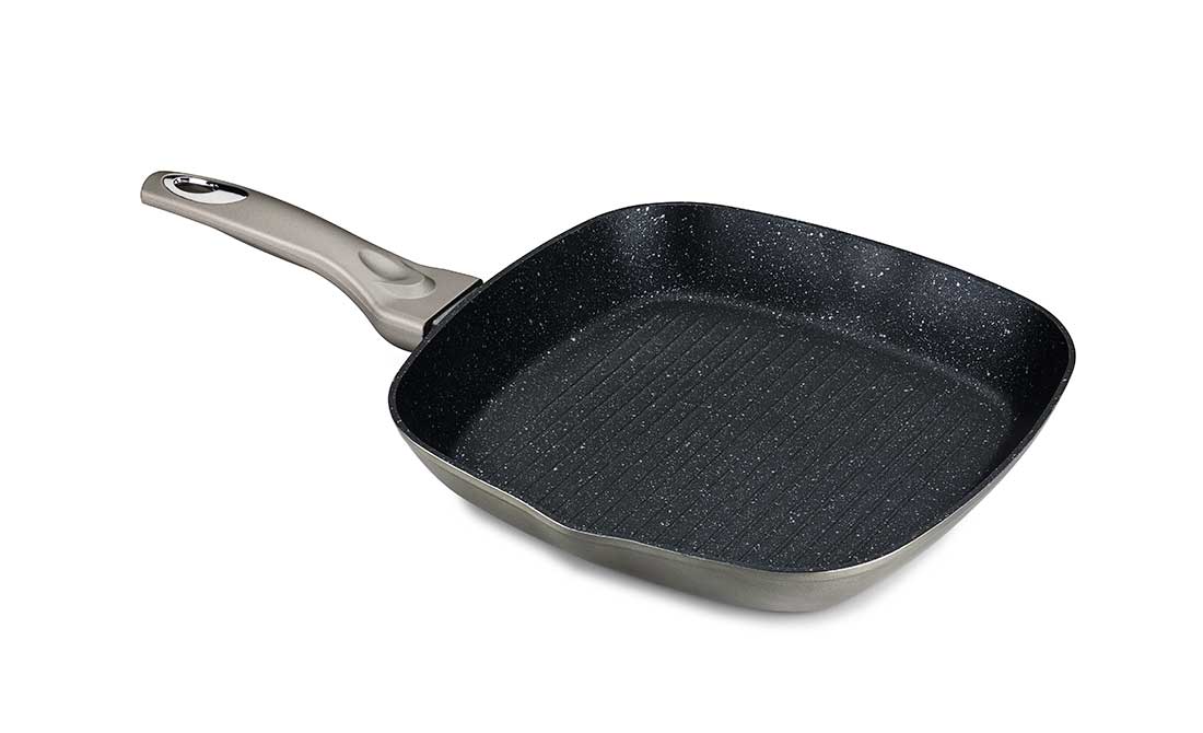 ASADOR GRILL cuadrado de 28x28cm., con canaleta de vertido.